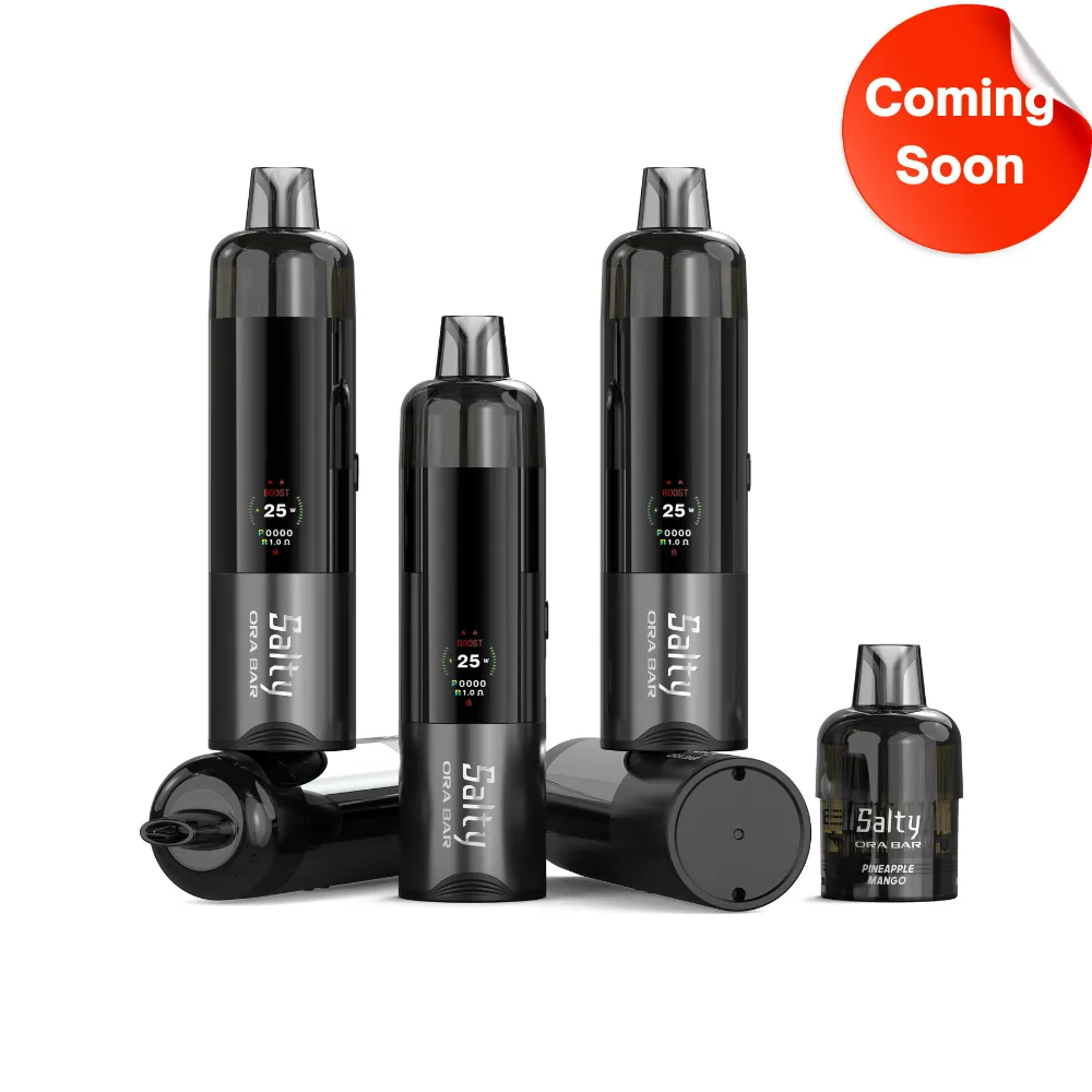 Salty Ora Bar – A high-performance prefilled pod system built for extended vaping and smart functionality. With a large 1100mAh removable battery and 18mL e-liquid capacity, this device delivers up to 30,000 puffs. Powered by a dual mesh coil (0.5Ω x2), it offers both Regular (5W–15W) and Boost (16W–25W) modes to suit your vaping preference. The smart display screen provides real-time information on power, resistance, puff count, and more. With adjustable airflow and child safety lock, the Salty Ora Bar is made for vapers who want full control in a sleek, compact design.